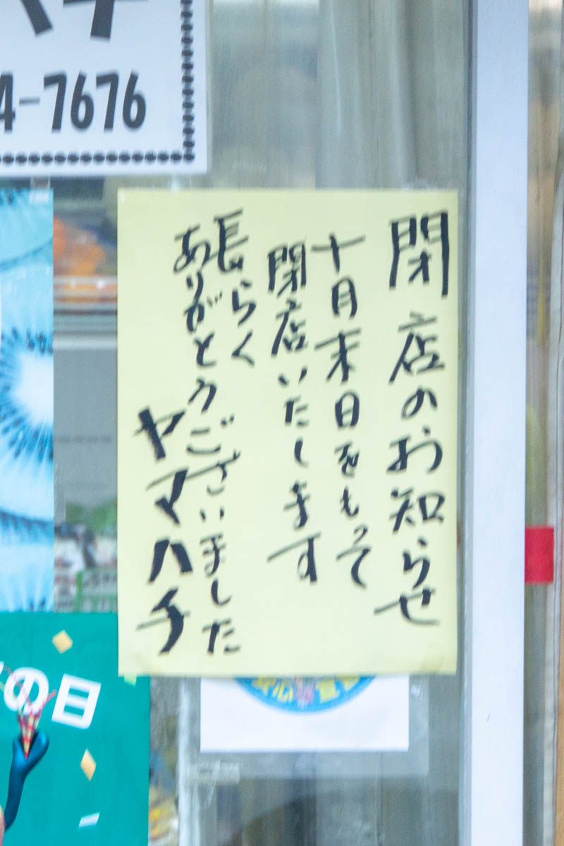香里ケ丘にある鮮魚店 「みやうち」と青果店「ヤマハチ」が10月31日で閉店するようです。