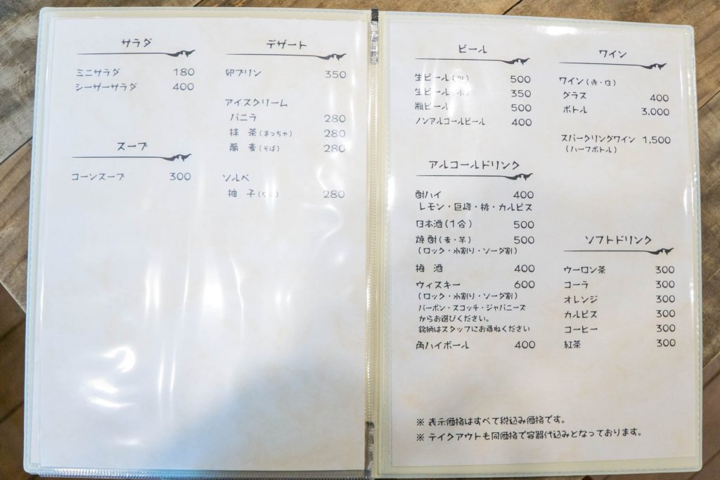 お店のメニュー↓