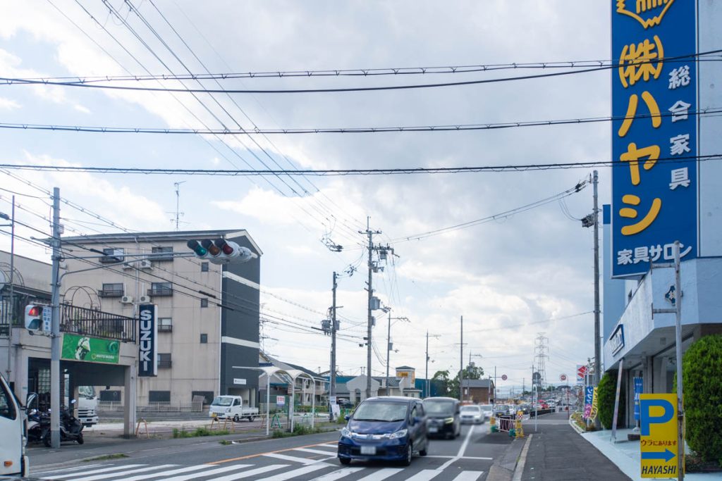 こっちにいくと枚方信用金庫などがあります。お店の向かいには家具サロン・ハヤシが。
