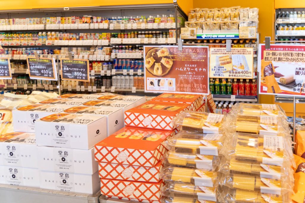 地域のお菓子などもたくさん。ハムスターモナカ…!