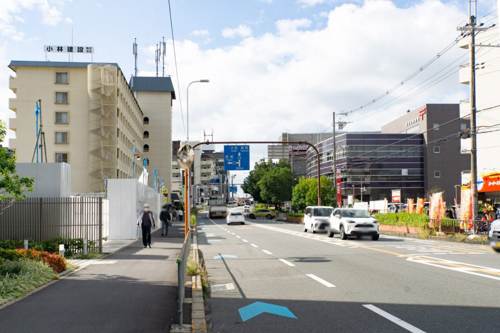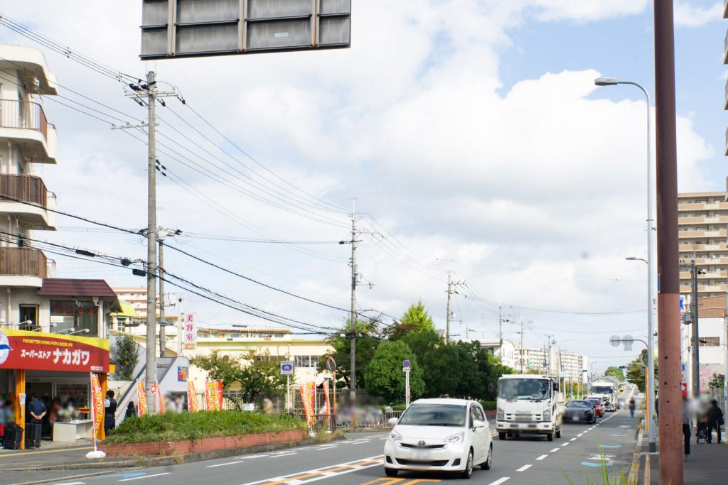 こっちに行くと枚方北郵便局などが。さらに進むと牧野駅近くの交差点があります。