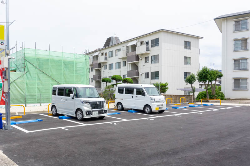 全8台駐車できるようで、下から板が上がってくるフラップ式のコインパーキングになっています。