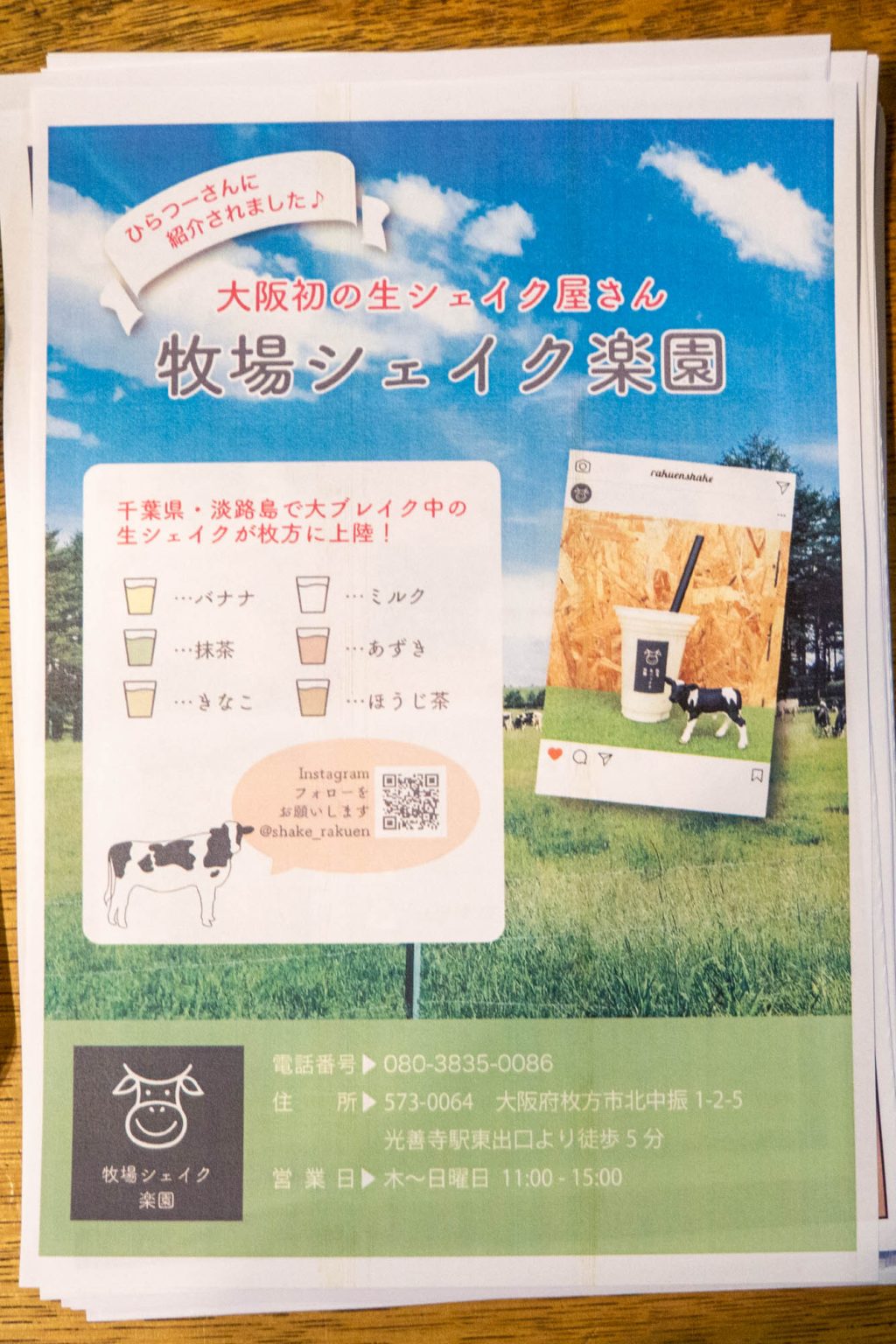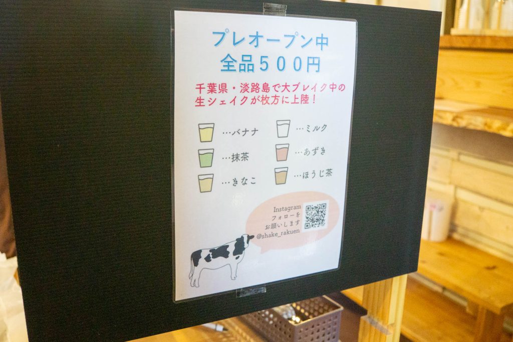 北中振につくってた生シェイク店「牧場シェイク楽園」がプレオープンしてる。大阪初の生シェイク店