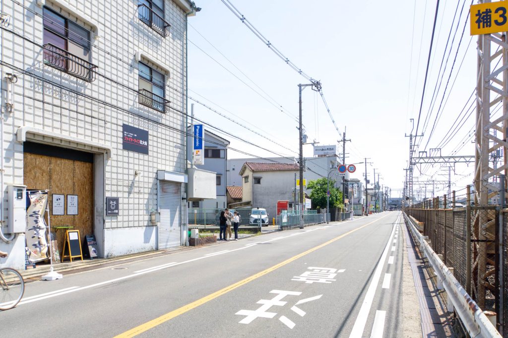 こっちにいくと国道1号線の下をくぐってひらパーの横の道路から枚方公園駅方面。向かいに写っているとおり線路沿いです。