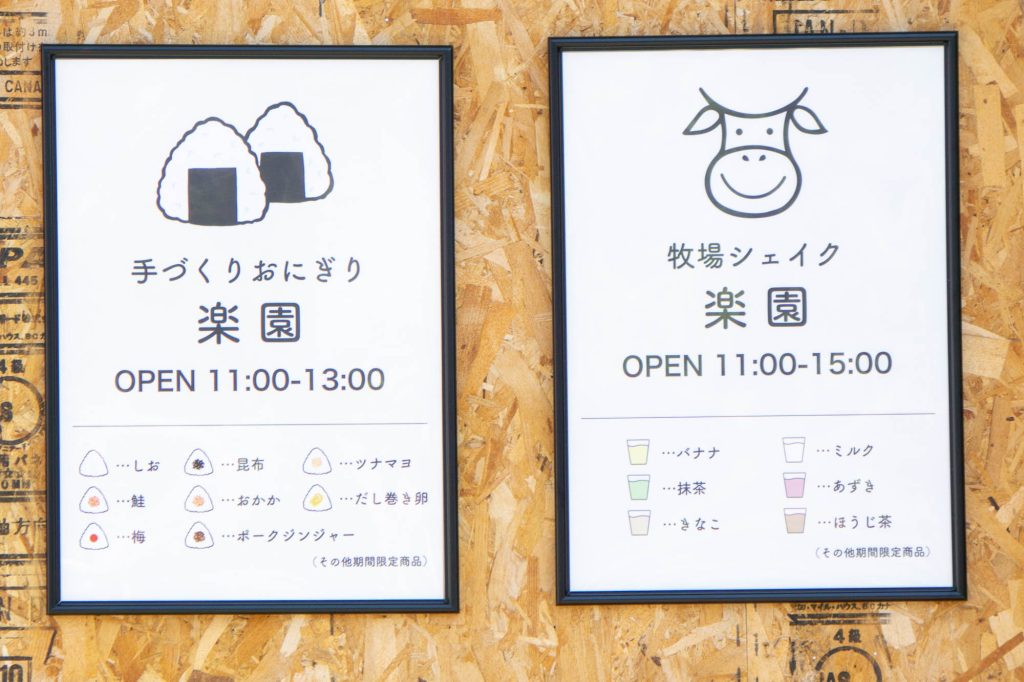 おにぎりの方は11:00-13:00、牧場シェイクの方が11:00-15:00。
