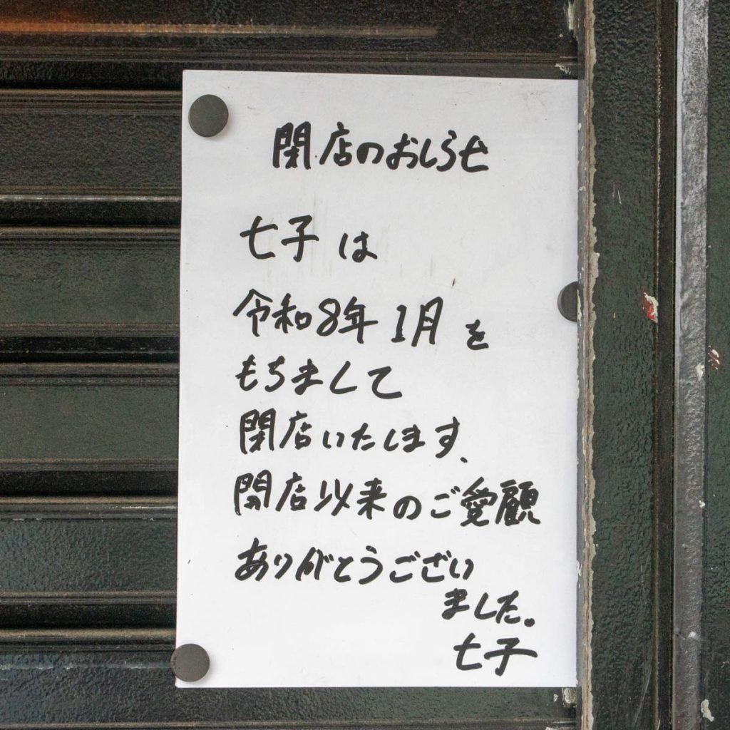 光善寺駅ちかくの「炭火や七子」が閉店してる
