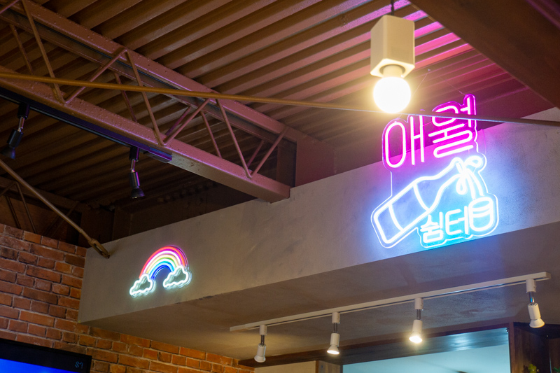 K-POPアイドルのMVが流れ続けるモニターやネオン看板など、韓国料理屋さんに来た感!!