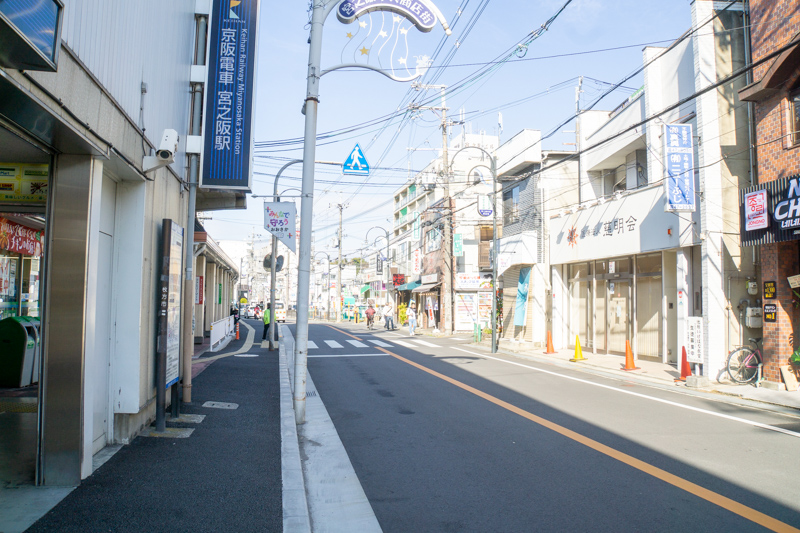 反対方向にはG-ONEやサンディなどが。すぐ目の前には宮之阪駅があります。