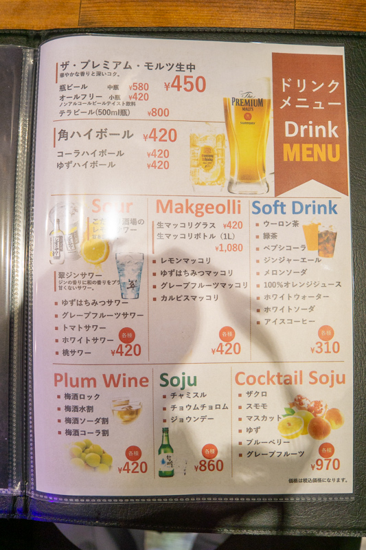 ドリンクもにはボンボンジュースやチャミスルなど、これまた人気のお酒やジュースなどが。