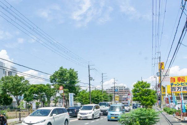 こっちにいくと交差点「西招提町」があり、そのまま進むと業務スーパーなどがあります。