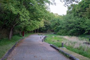 こっちに行くと府道736号線にでます。右に曲がると津田駅周辺へ。