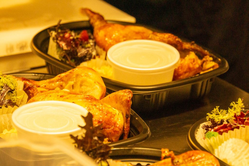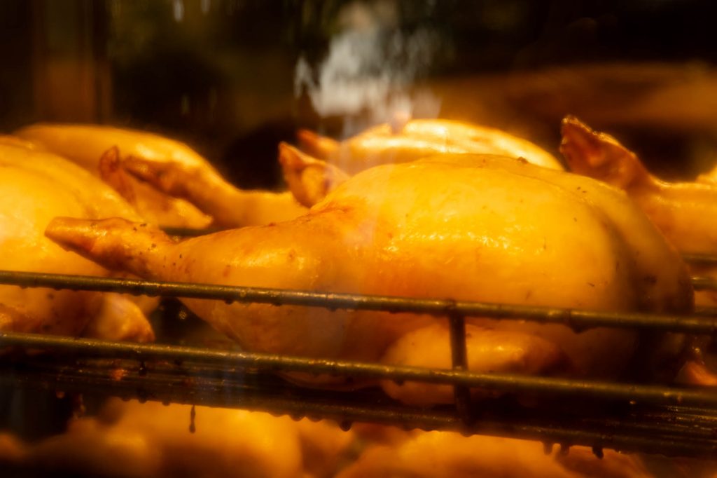 お店に入ると、ローストされているチキンが。