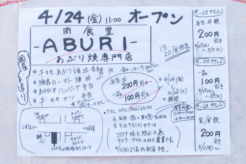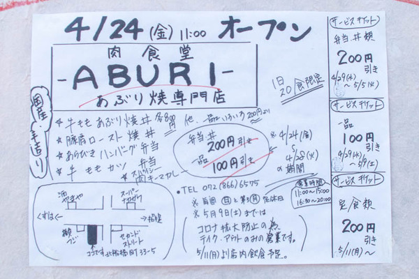 府道18号線沿い北船橋町に作っていた肉あぶり焼専門店「肉食堂 ABURI」がオープンしています。
