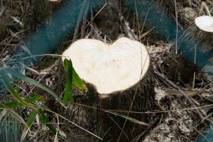 ボーネルンドの屋外エリアを外から見た図。木で囲まれていまして、