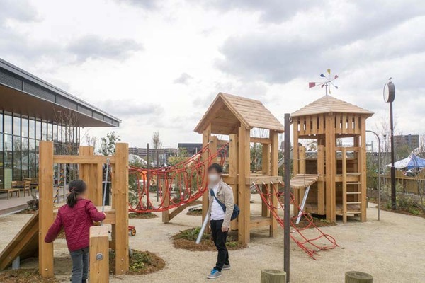 日本初の遊具が揃う家族の遊び場が「ボーネルンド プレイヴィル 安満遺跡公園」なんだそうです。