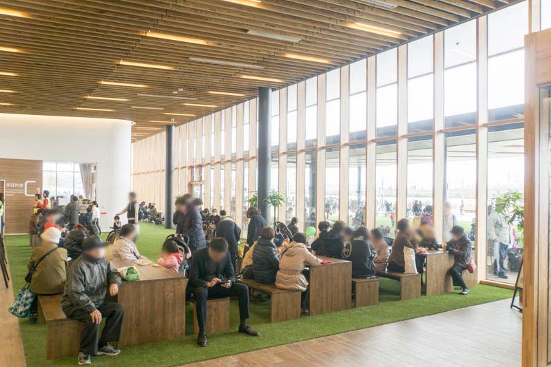 ロビー的なエリア。光が多く入る木の多い空間となっていました。