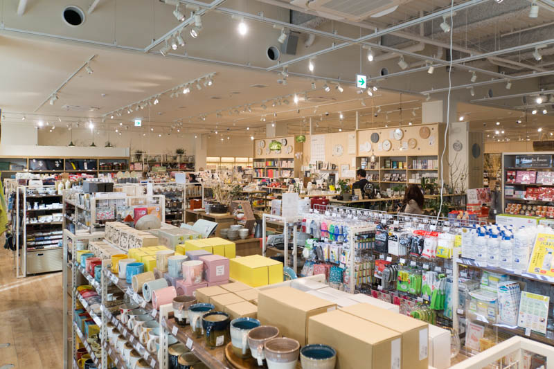お店の角から撮影。手前がキッチン雑貨。ですが写っているのはお店の1/3くらいです。