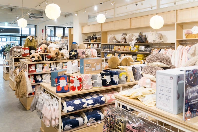 入り口からレジの間はこんな感じで毛布などふわふわしたものがいっぱい。