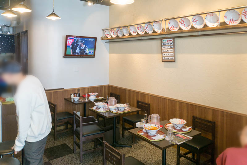 2人がけのテーブルが4つとカウンターといった構成。
