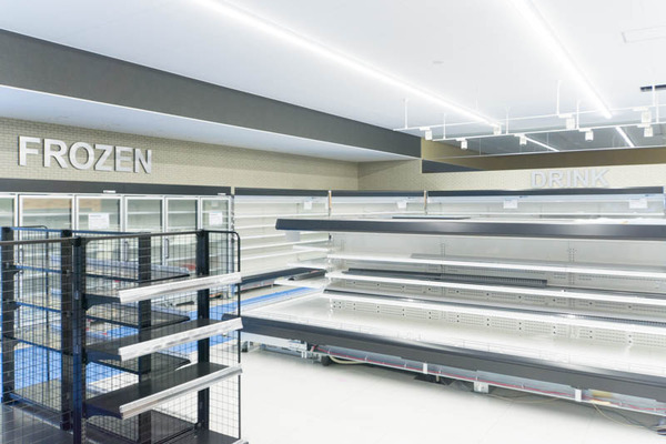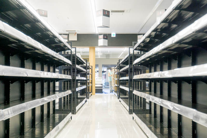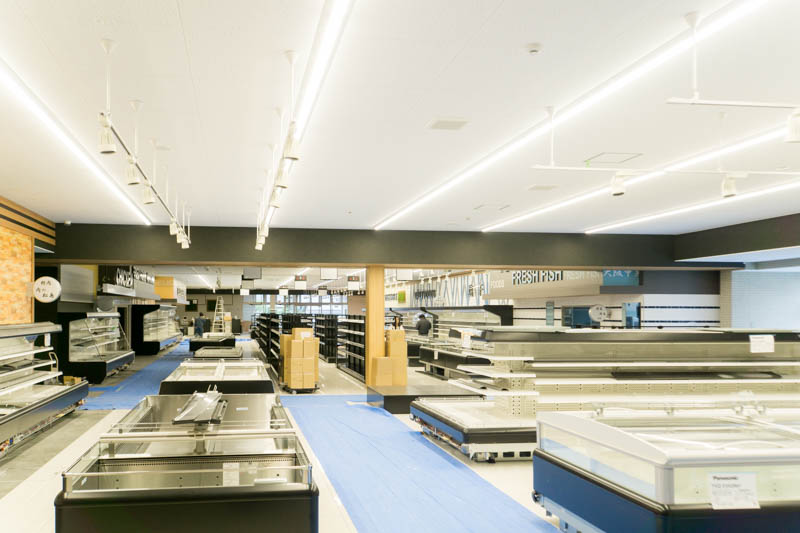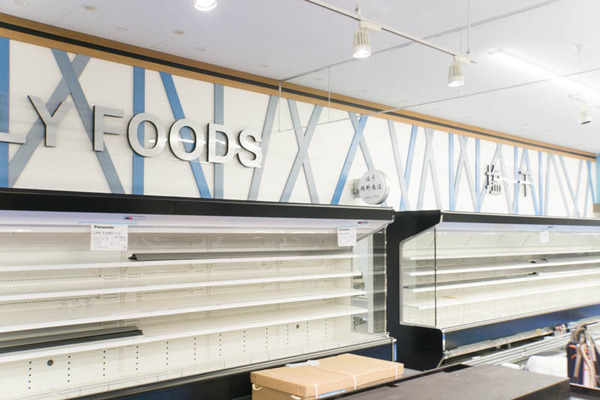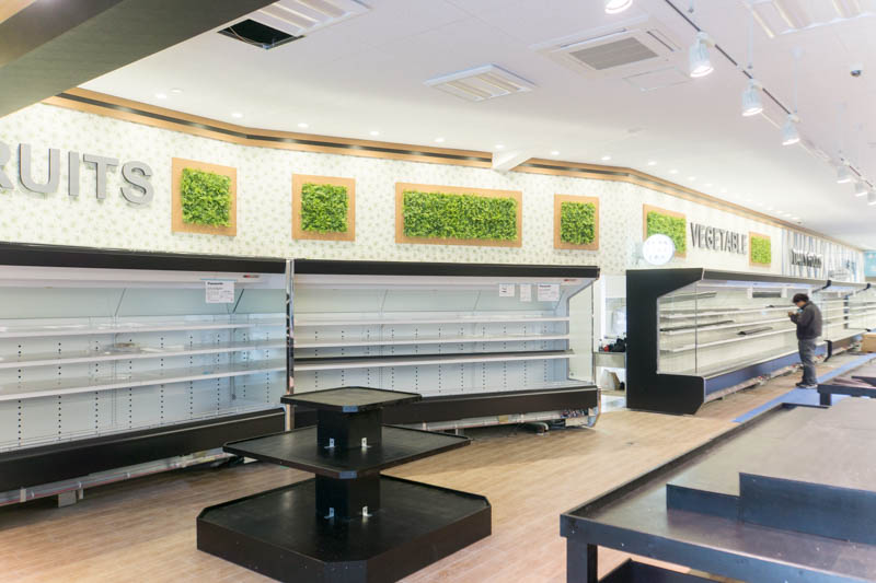 お店の中に入るとすぐ目の前にあるのが「マルオカ青果」の青果コーナー。野菜や果物が陳列される予定です。