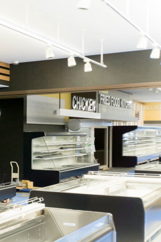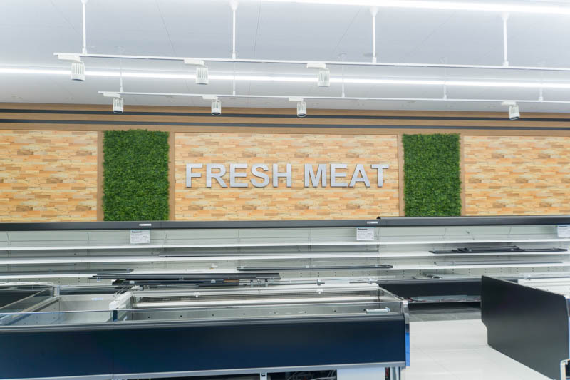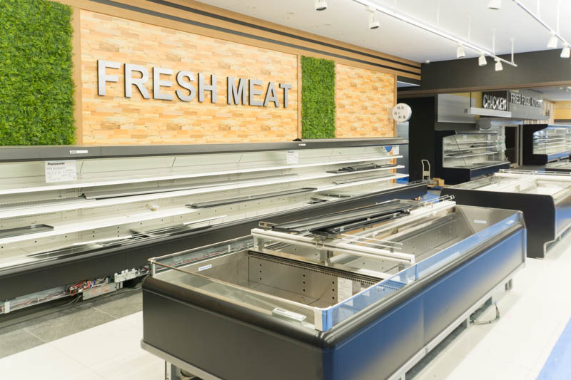 そこから最初の出入り口方面へと戻っていきまして、先程の冷凍品コーナーの隣あたりにあるのが精肉店「肉の松島」。リニューアル後に新しく入るお店の1つです。