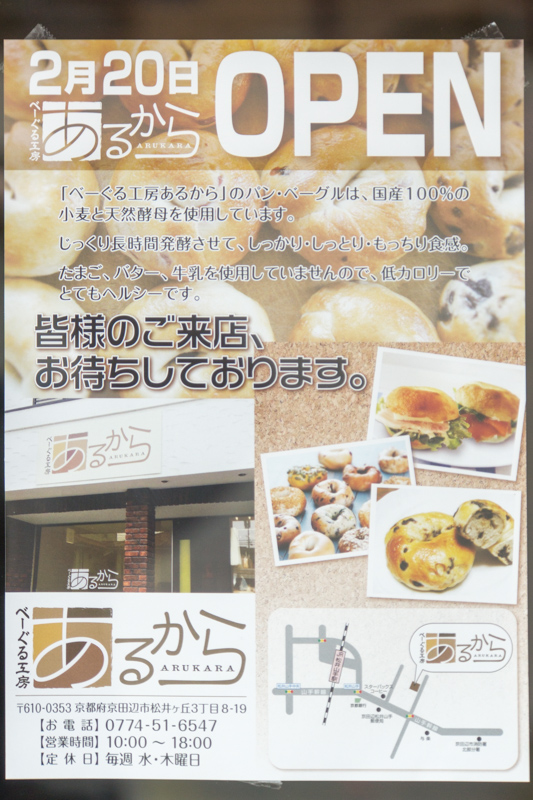 松井山手駅近くに「ベーグル工房あるから」というパン屋さんができています。