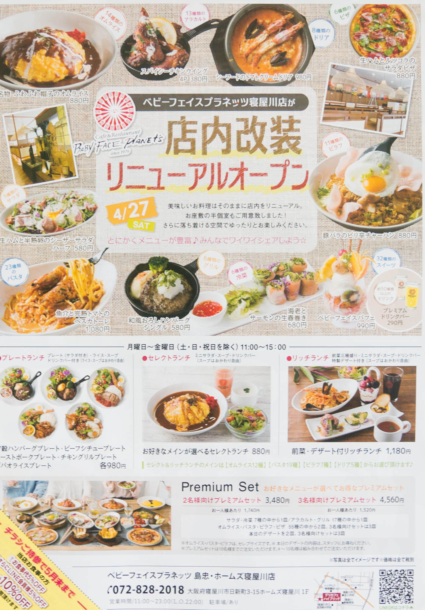 ホームズ寝屋川の「ベビーフェイスプラネッツ 島忠・ホームズ寝屋川店」がリニューアルオープンしています。