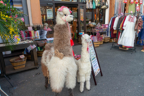 店内の前にはアルパカが。触ってみたら、かなりもふもふ。
