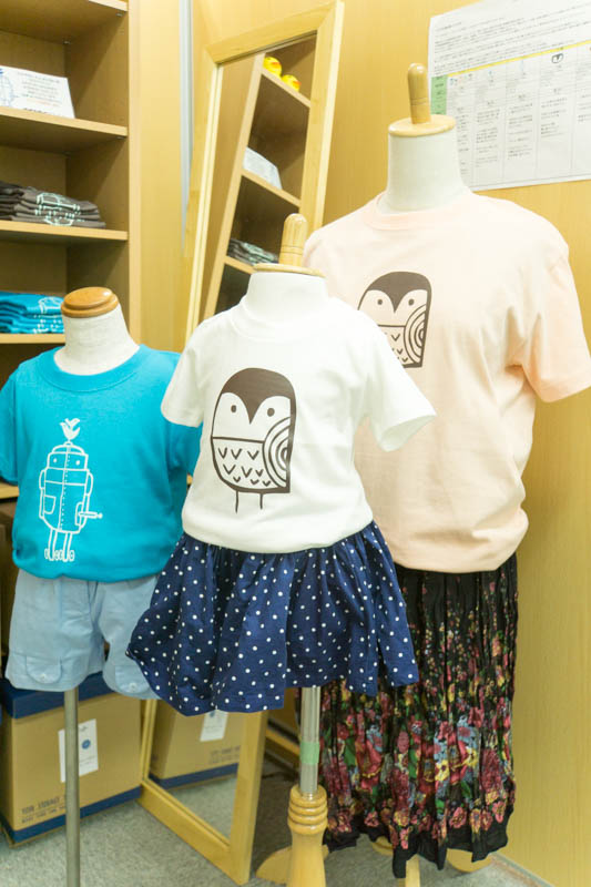 Tシャツは大人用もあり、コーディネート例が飾られていました。