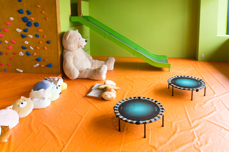 店内入ってすぐ右手には巨大なクマや滑り台、トランポリンなどが。