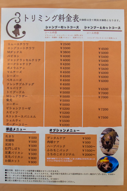 ハーブパック、肉球ケアなどのオプションがあるようです。