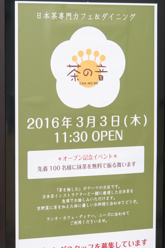 立て看板がありました。3月3日の11時半オープンで、当日は100名に抹茶が無料だそう。