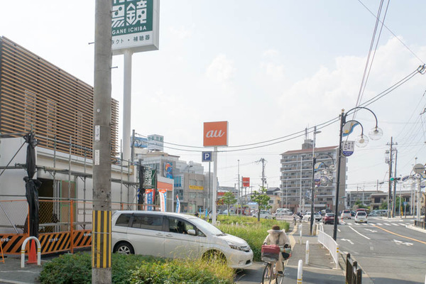反対方向の隣には眼鏡市場、auなどがあり、その先にはマクドナルドがそばにある交差点へ。