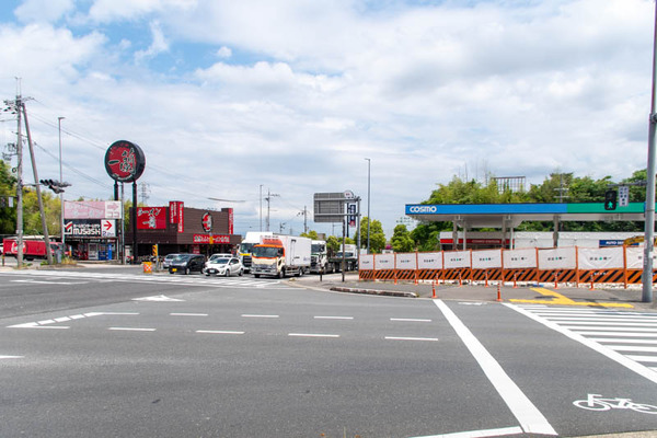 1号線沿い八幡洞ヶ峠交差点にある「コスモ石油 国道八幡SS」がリニューアル工事をしています。
