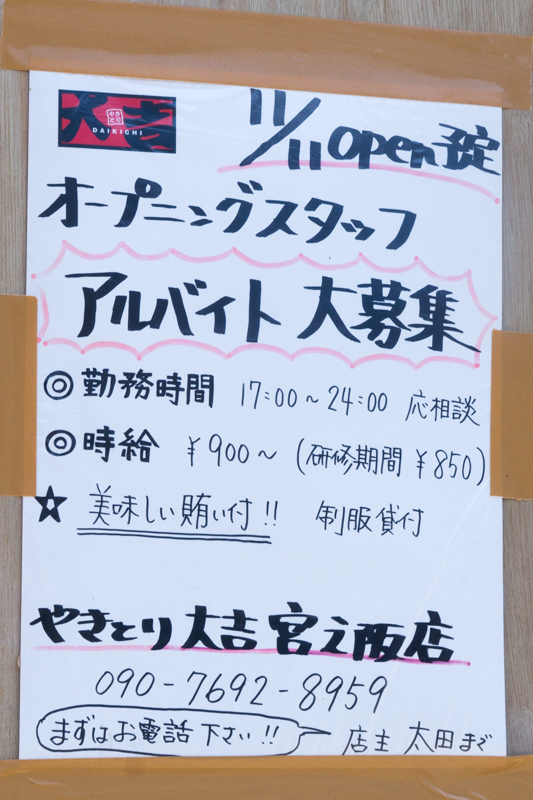宮之阪駅前に「やきとり大吉」ができるようです。