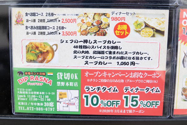 府道144号線沿い禁野本町に作っていたインド料理店「ディップラスナ」がオープンしています。