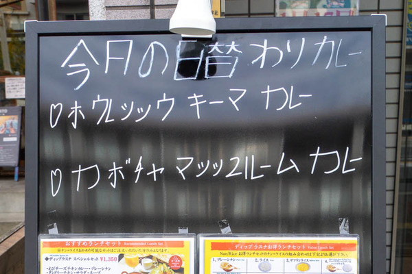 ほかには、ランチセット(チキンカレーor日替わりカレー・サラダ・ナンorライス)はお持ち帰りもできるようでした。