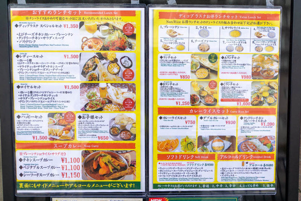 ン・タンドリーチキン・サラダ・スープ・ソフトドリンク)」は1350円。