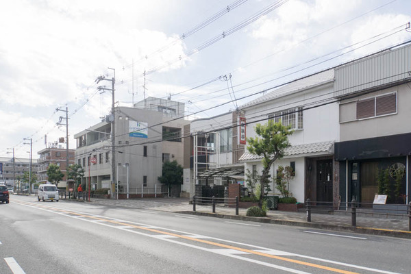 こっちの隣にはAOKIやローソンなどがあり、進んでいくとスーパーナカガワ、やまやにかごの屋などの前を通って楠葉並木や楠葉朝日の方へ。