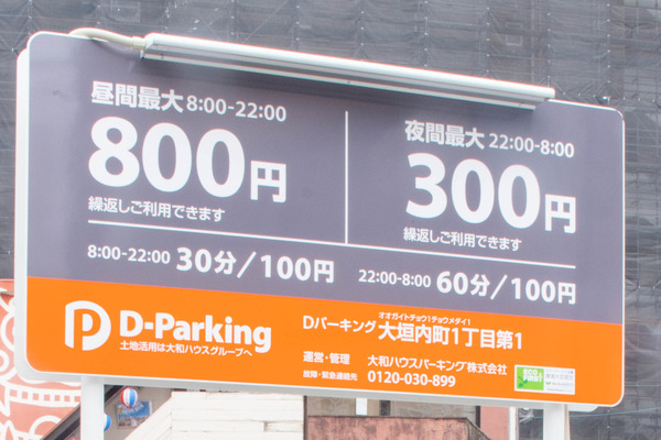 以前はハローパークというコインパーキングでしたが(→Googleストリートビュー)、大和ハウスが運営するDパーキングになったようです。