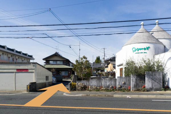 「Pomar」が入っていた建物の横の、加工してつけた矢印の道路に入っていくとあります。
