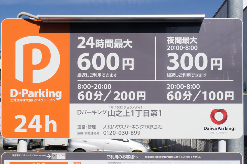 山之上に「Dパーキング 山之上1丁目第1」というコインパーキングができています。