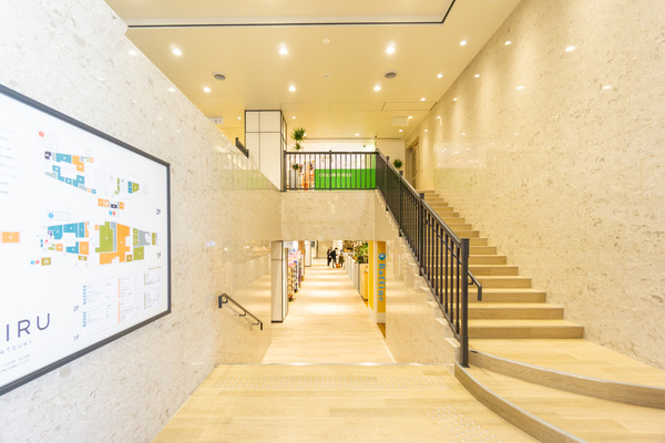 このとおり、駅の壁にもEMIRUとあるくらい、駅と一体化している施設です。