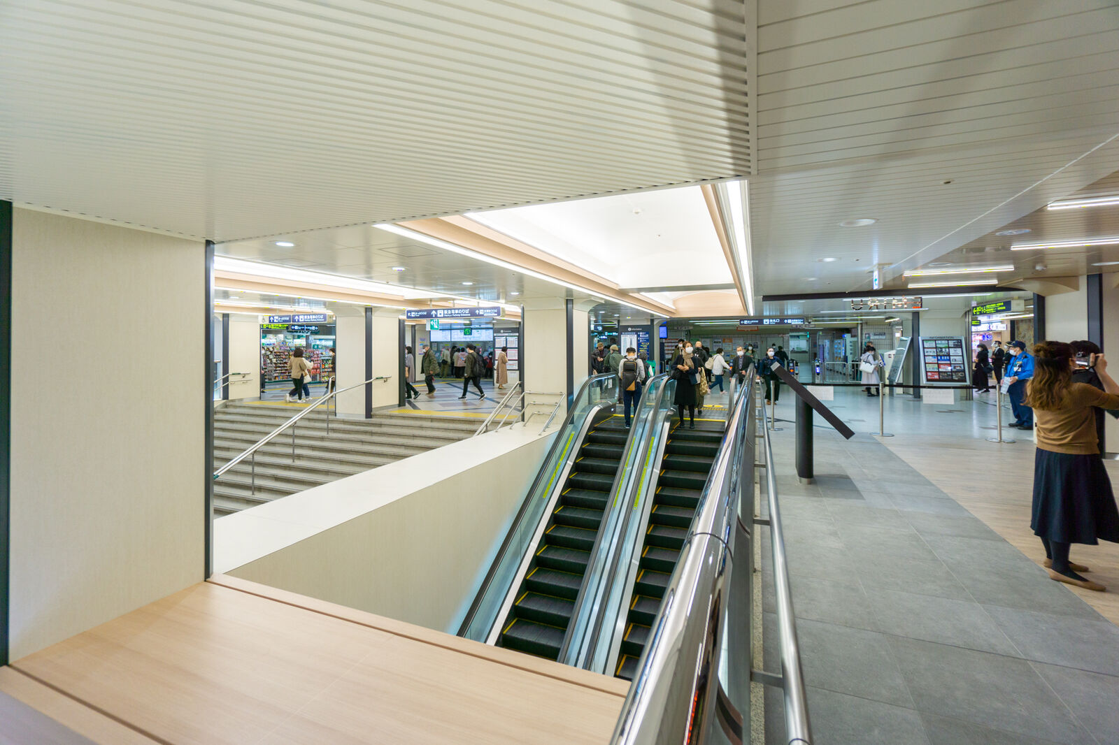 入り口から進んで振り返って撮影。つまり奥に写っているのが1階の改札側出入り口。
