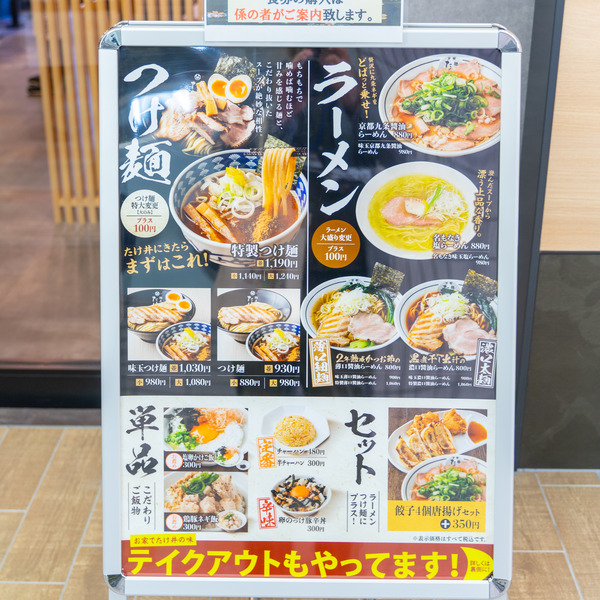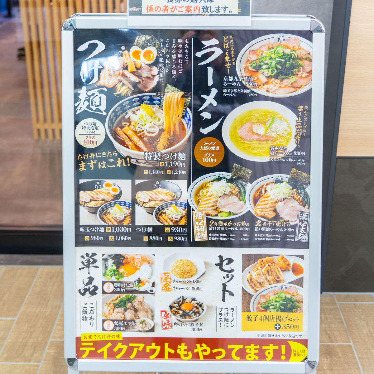 麺屋たけ井といえば京都府城陽市に本店があり、阪急洛西口駅前や八幡市、なんばや梅田にも店舗がある人気ラーメン店。(→公式サイト)