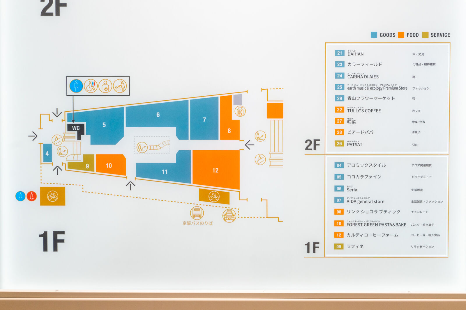 また、2階出入り口から少し改札側に行ったあたりにも数店舗あるのと、