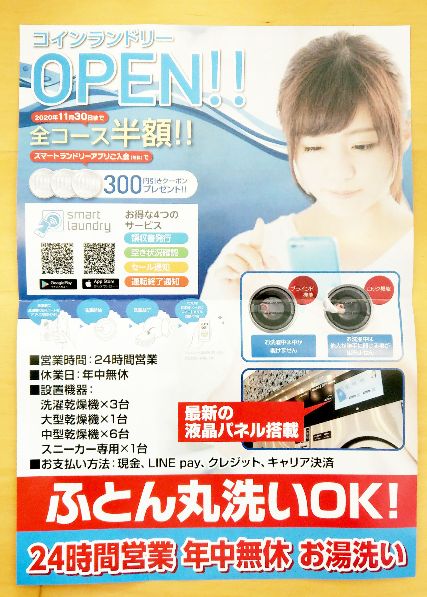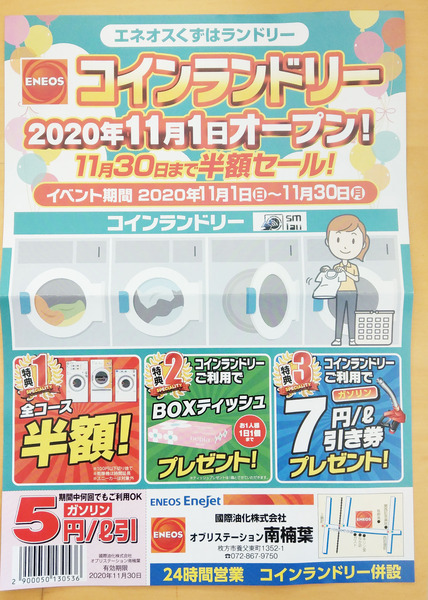 とうかえでの道沿い養父東町に「エネオスくずはランドリー」というコインランドリーができています。