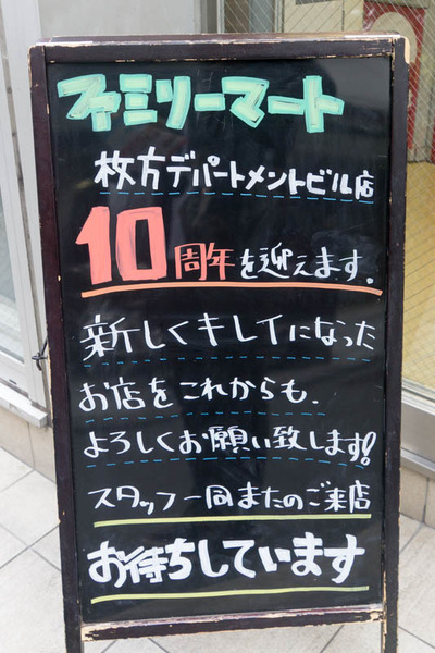 枚方市駅北口のスターバックス横にある「ファミリーマート 枚方デパートメントビル店」がリニューアルオープンしています。