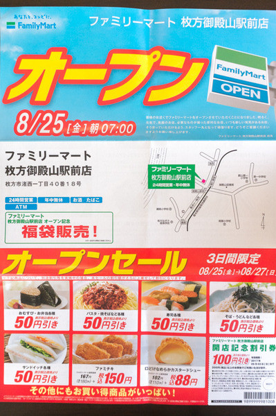 今年に入って枚方近隣のファミリーマートの開店情報をいくつも記事にしてきましたが、福袋の取り扱いがあるお店はレアなパターン。僕が見に行ったときには福袋を持ってお店を出てくる方も多く、人気のようでした。