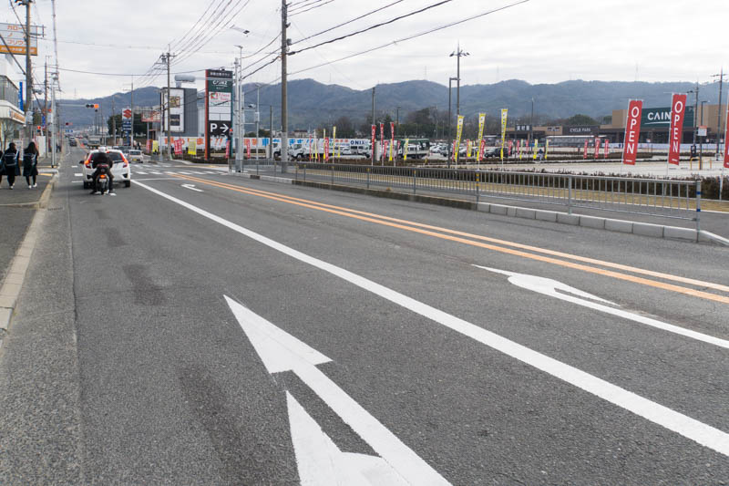 反対方向にいくと、タイヤ館がそばにある交差点「神出来」があります。そこを右に行くと第二京阪などがあり、茄子作から枚方市内へ。